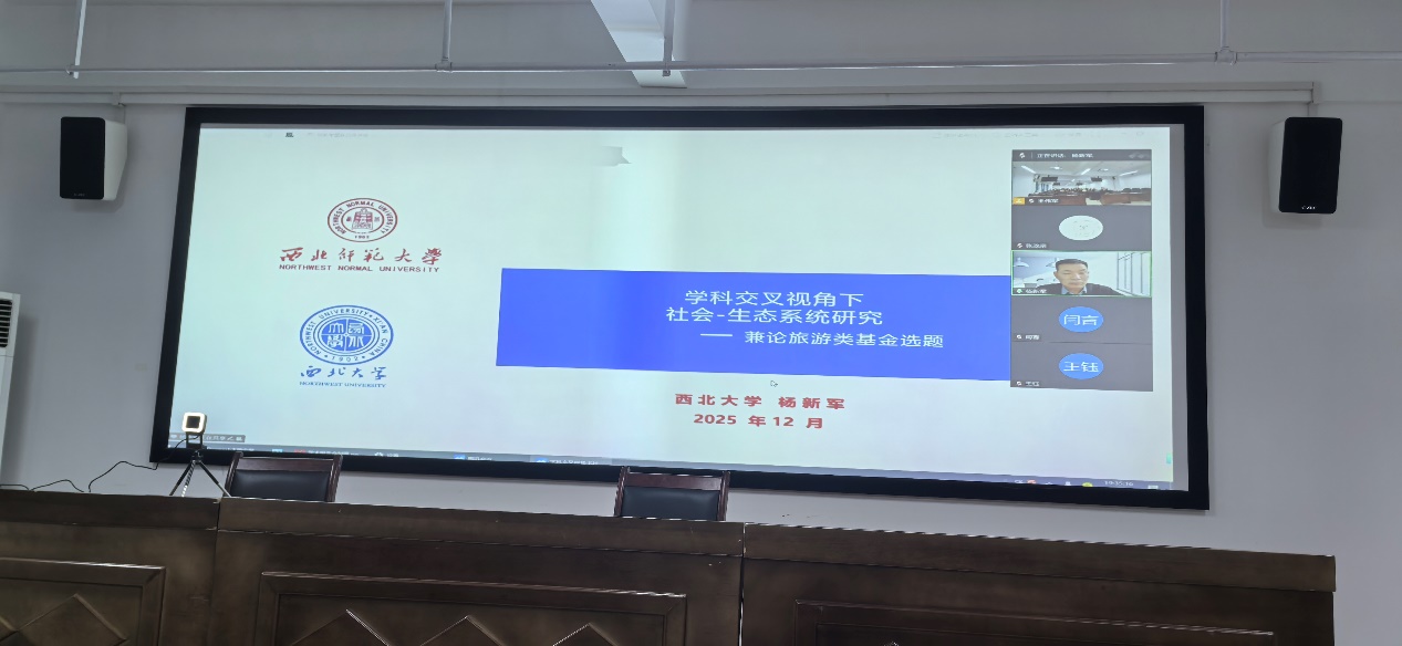 为夯实研究生学术根基、拓宽学术研究视野,搭建高水平跨学科学术交流平台,助力旅游学科科研创新与人才培育,2025年12月3日晚上,我院在904会议室举办题为“学科交叉视角下社会-生态系统研究——兼论旅游类基金选题”学术报告。本次讲座特邀西北大学城市与环境学院杨新军教授、博士生导师作为线上主讲人,由学院教师叶文丽博士主持,全体研究生共同参与。